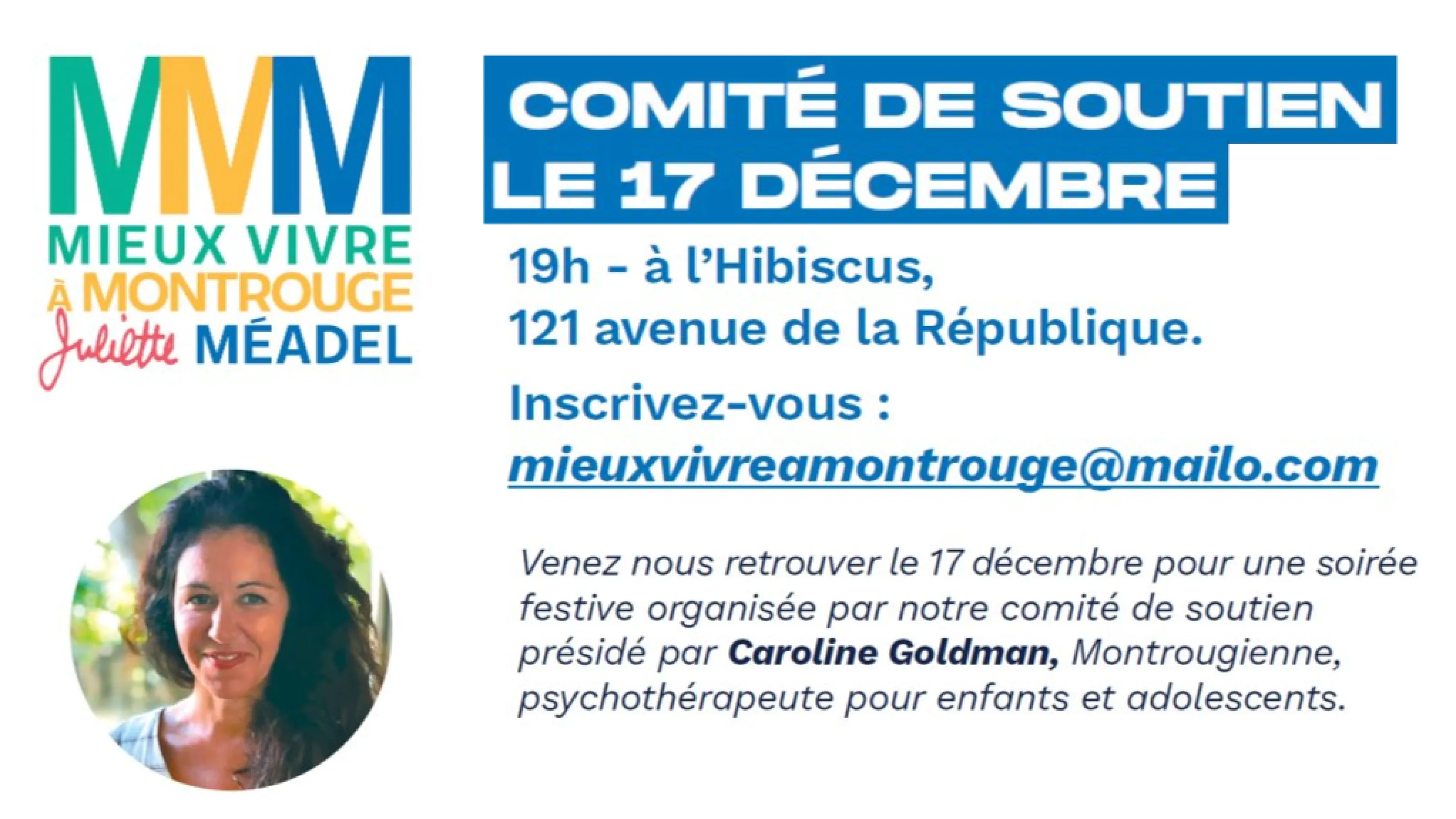 Venez nous retrouver le 17 décembre pour une soirée festive organisée par notre comité de soutien présidé par Caroline Goldman, Montrougienne, psychothérapeute pour enfants et adolescents.